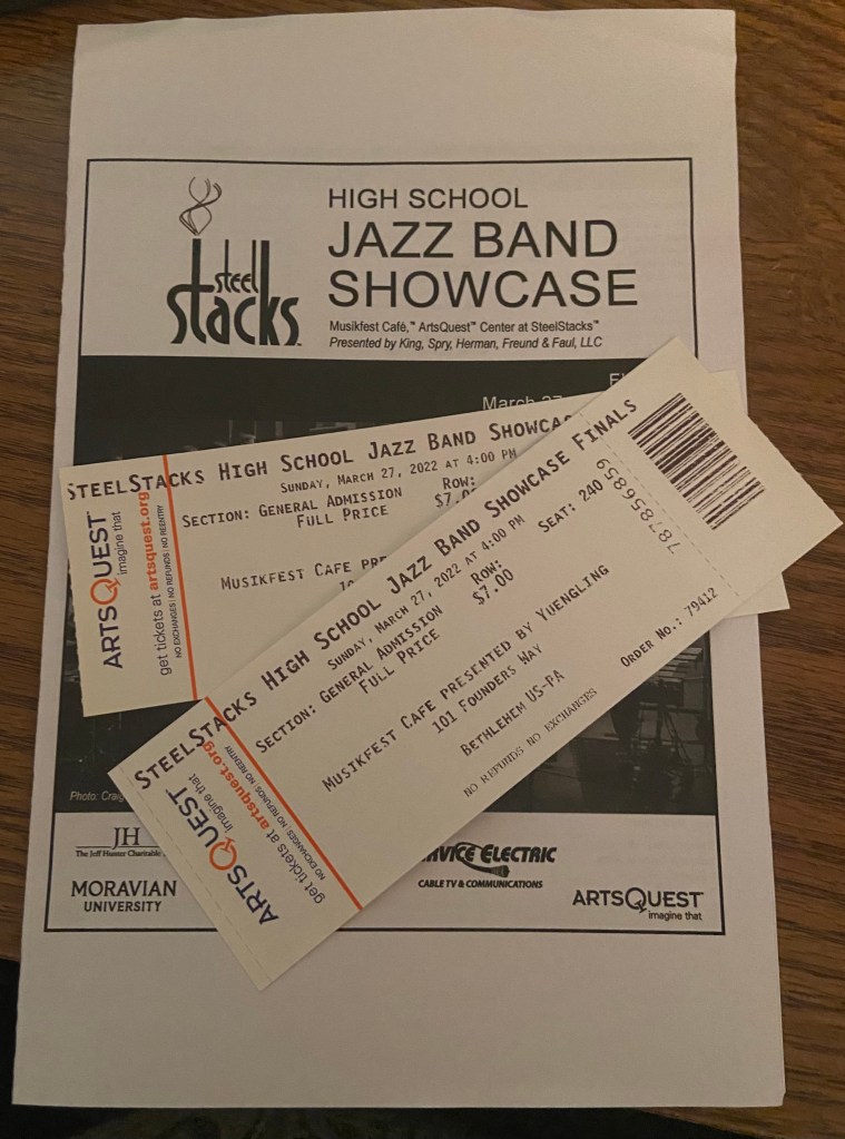 We were there to watch our son, Charlie, lead his high school jazz band students in the finals of the HS Jazz Band Showcase. This was our first live concert of this year, the only other one since Covid being the Holiday Concert at the high school where Charlie teaches.