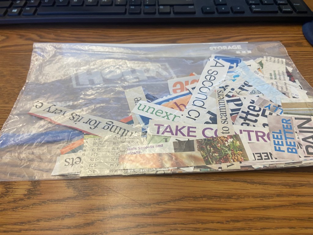 Luckily, I had two activities I had forgotten about (see the pattern?) ready to go. Thanks to my good friend Jolene, who gifted me Paint Chip Poetry and a bag of random words I had cut from magazines, I didn’t have to spend my entire lunch period crafting activities.